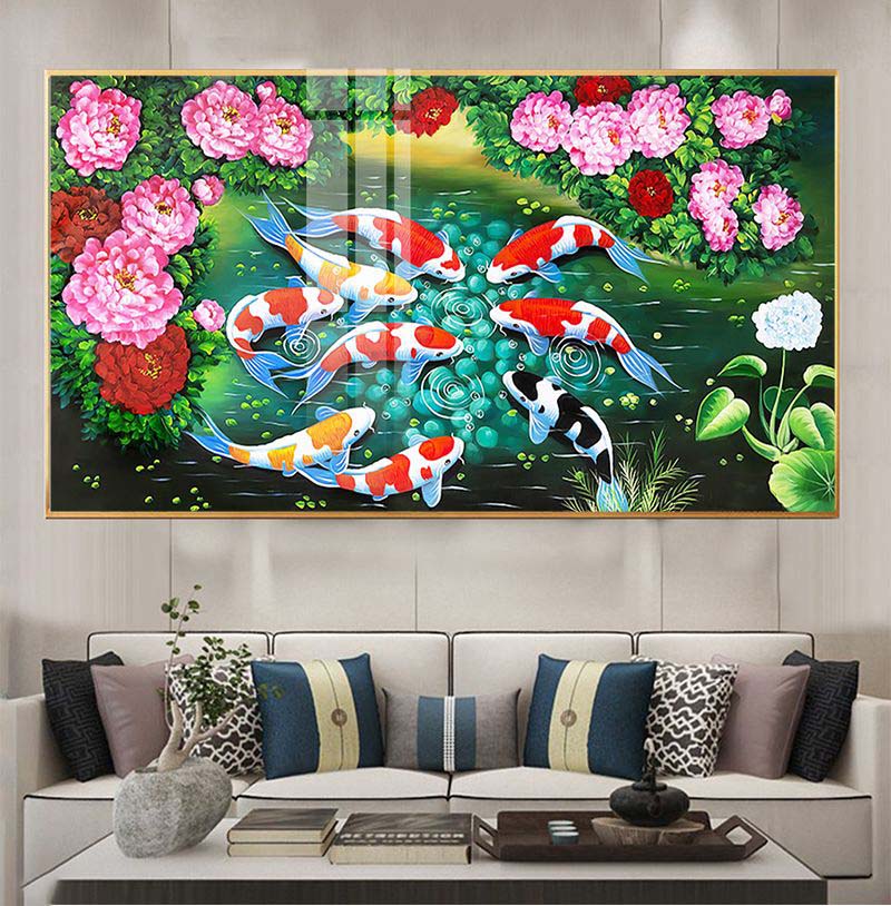 Tranh Treo Tường Cá Chép Hoa Sen Treo phòng khách CH16