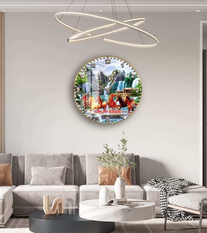 Giải Mã ý nghĩa tranh đồng hồ mã đáo thành công: Trong phong thủy, tranh mã đáo thành công mang ý nghĩa vượt qua mọi khó khăn, thử thách để đi đến vinh quang. Tám chú ngựa tượng trưng cho hình ảnh sao bát bạch đầy vượng khí, khai lộc, khai tài vận cho gia chủ. Số 8 trong phong thủy cũng là con số đẹp, có hàm ý làm ăn phát đạt. Bởi lẽ, số 8 trong Hán tự đọc là “Bát”, gần âm với từ “Phát”.