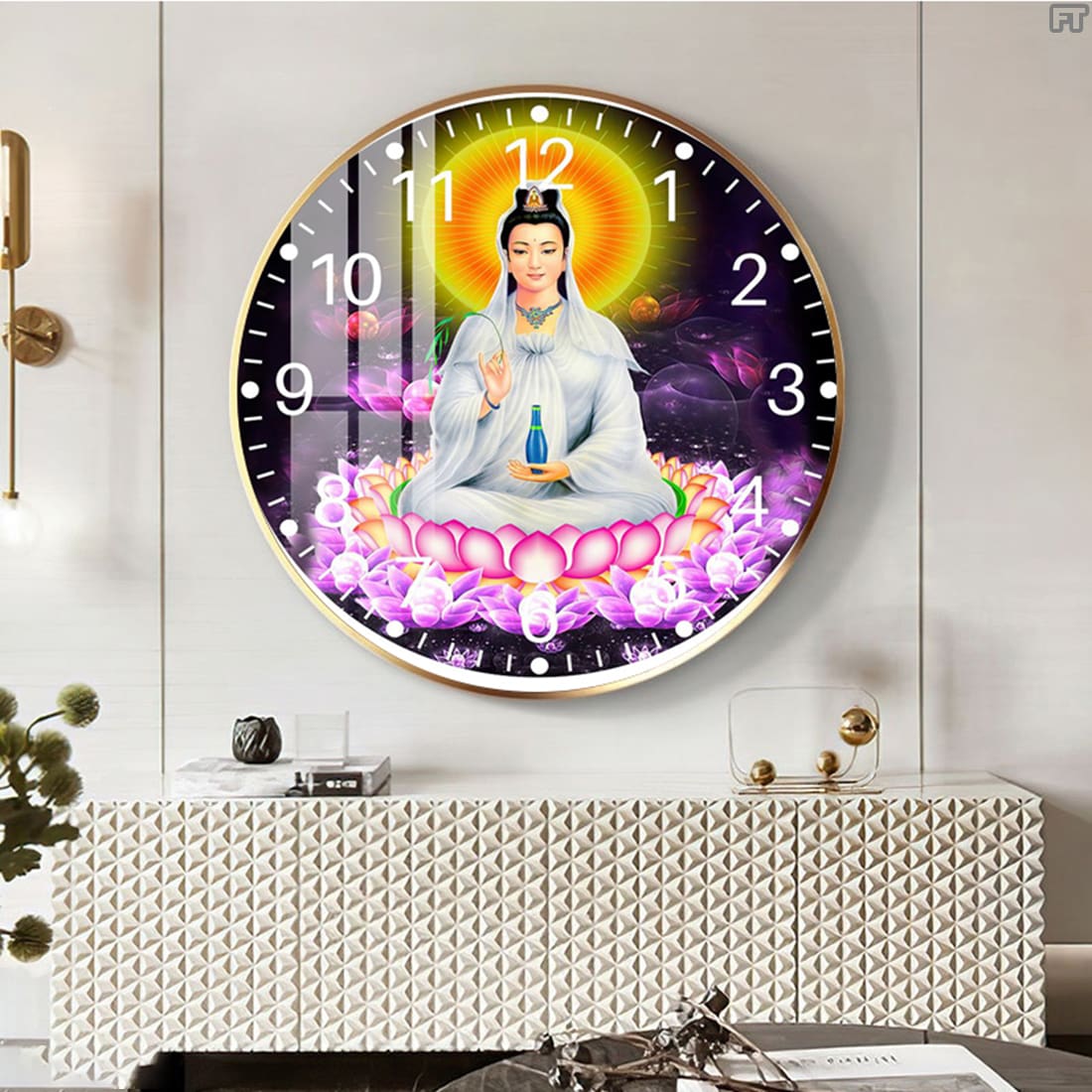 Tranh đồng hồ tròn phật bà quan âm treo tường Mã DHTB24