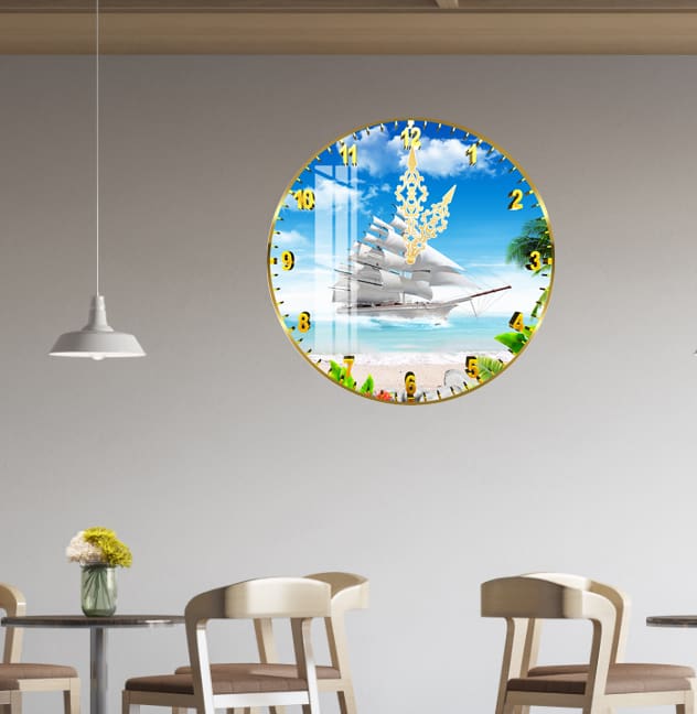 Tranh đồng hồ tròn thuận buồm xuôi gió treo tường Mã DHTB03