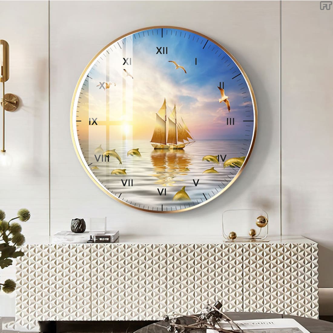 Tranh đồng hồ tròn thuận buồm xuôi gió treo tường Mã DHTB22