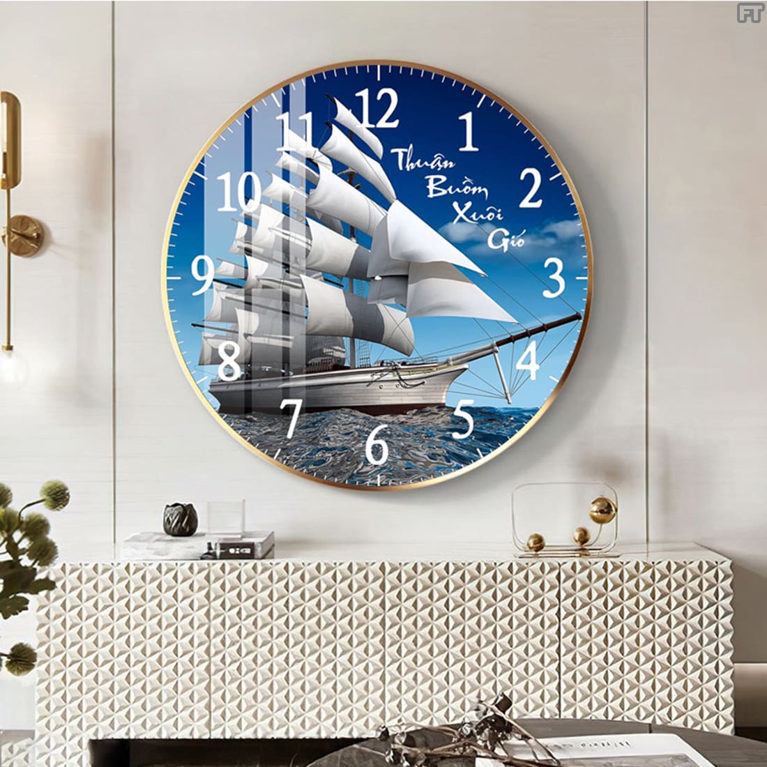 Tranh đồng hồ tròn thuận buồm xuôi gió treo tường Mã DHTB25