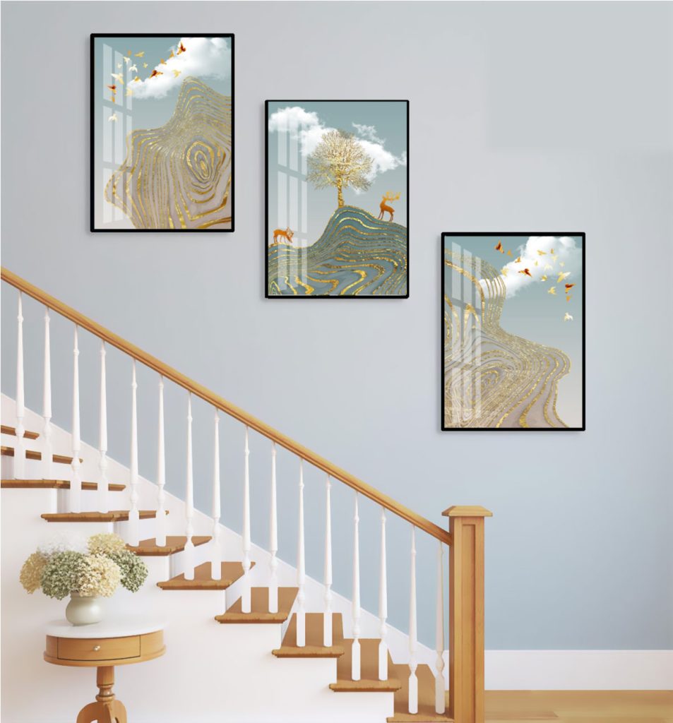 Tranh Hươu Tài Lộc treo cầu thang HTL02