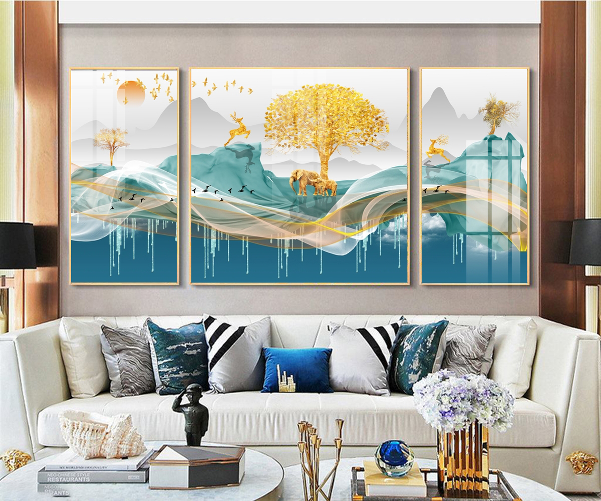 Tranh Treo Tường Phong Cảnh Hươu Tài Lộc Và Cây Vàng Treo Phòng Khách TL09