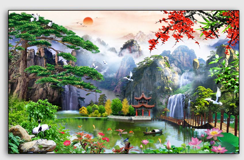 Tranh Sơn Thủy Hữu Tình Treo Phòng Khách SHT15
