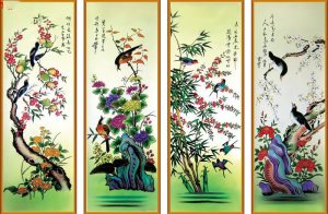 Tranh Tứ Qúy Tùng Cúc Trúc Mai Tráng Gương Trang Trí Phòng Khách TQ01
